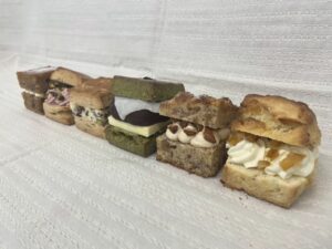 季節のベイクドタルトを中心にスコーンサンドや焼き菓子をお持ちします。