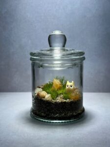 湿度の保たれた容器内でゆっくりとコケ植物は育ちます。