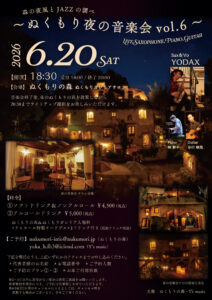 6/20(土)『ぬくもり夜の音楽会 vol.6 ~森の夜風とJAZZの調べ~』開催します。