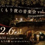 2025年9月16日 / 最終更新日 : 2025年9月19日 nukumori 12/6(土)『ぬくもり夜の音楽会 vol.5 X’mas Special』を開催します 12/6(土)にサックス奏者のYODAXさんを迎えて『ぬくもり夜の音楽会 vol.5 X’mas Special』を開催いたします。 『X’mas Special小さな幸せにこころあたたまる特別な […]